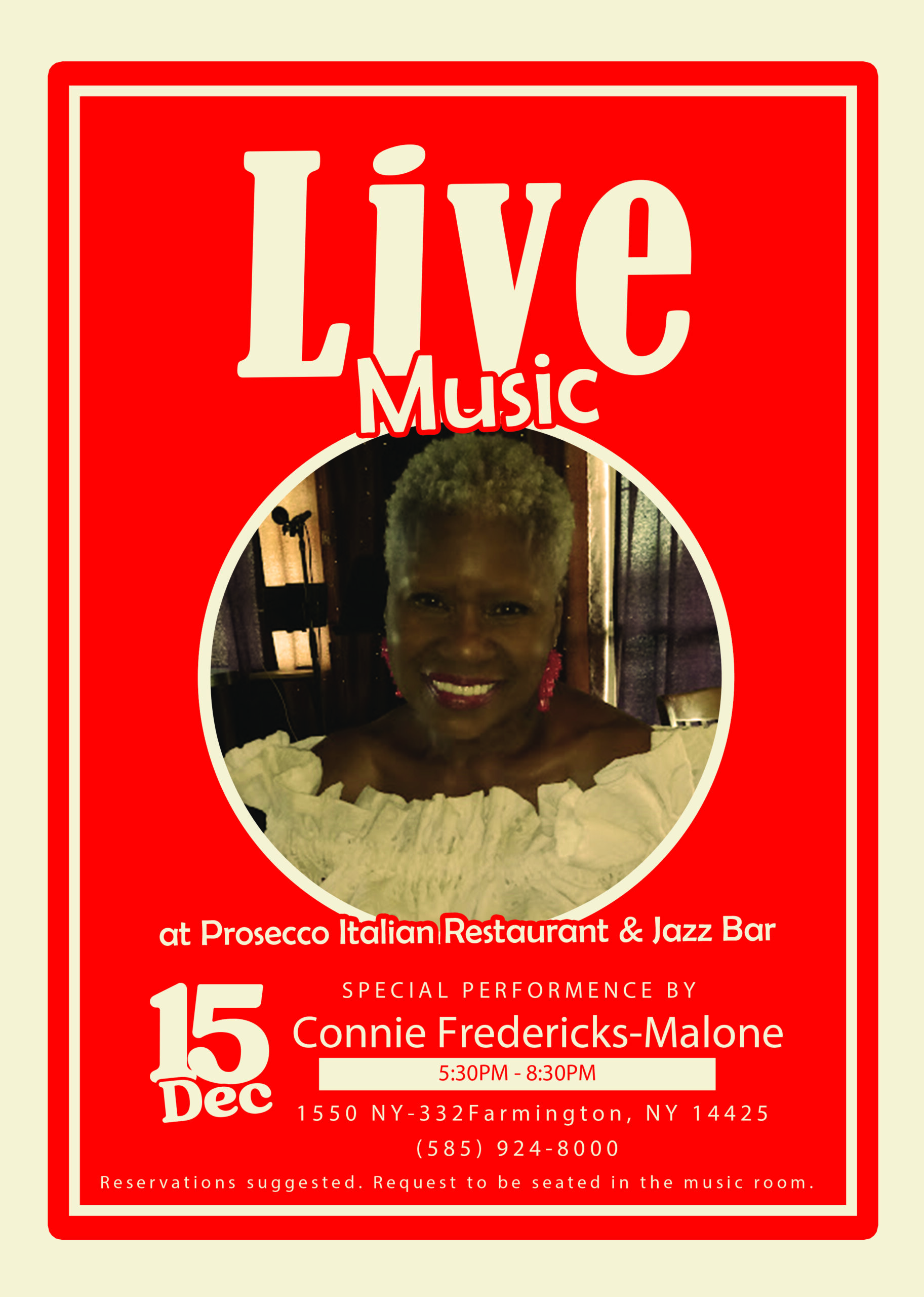 Featured December 15, 2023 @ 5:30 pm - 8:30 pm Prosecco Italian Restaurant & Jazz Bar Prosecco Italian Restaurant & Jazz Bar 1550 NY-332, Farmington, NY, United States